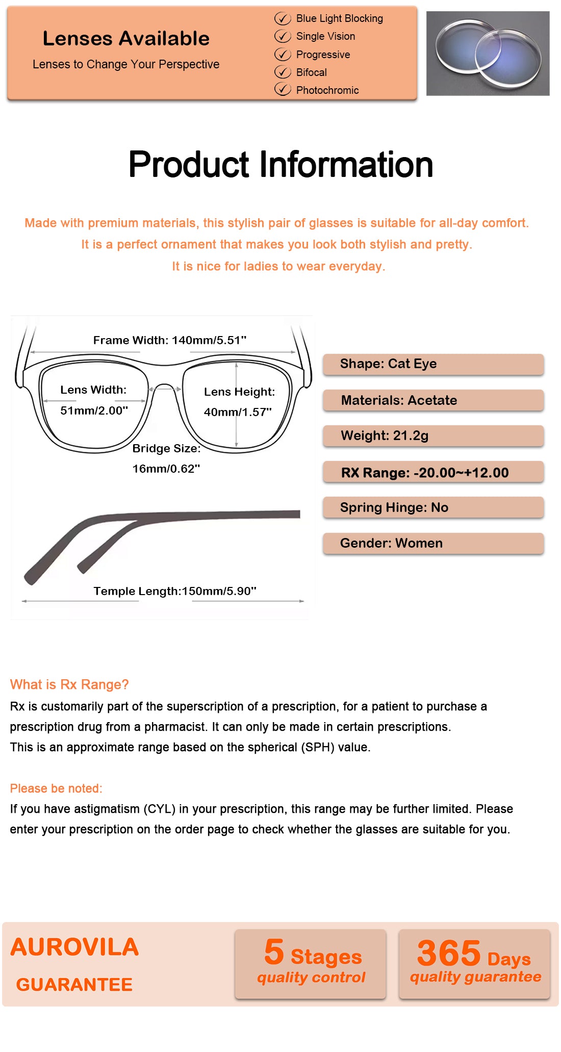 Women Eyeglasses Cat Eye Acetate Glasses Frame -Emory – AUROVILA